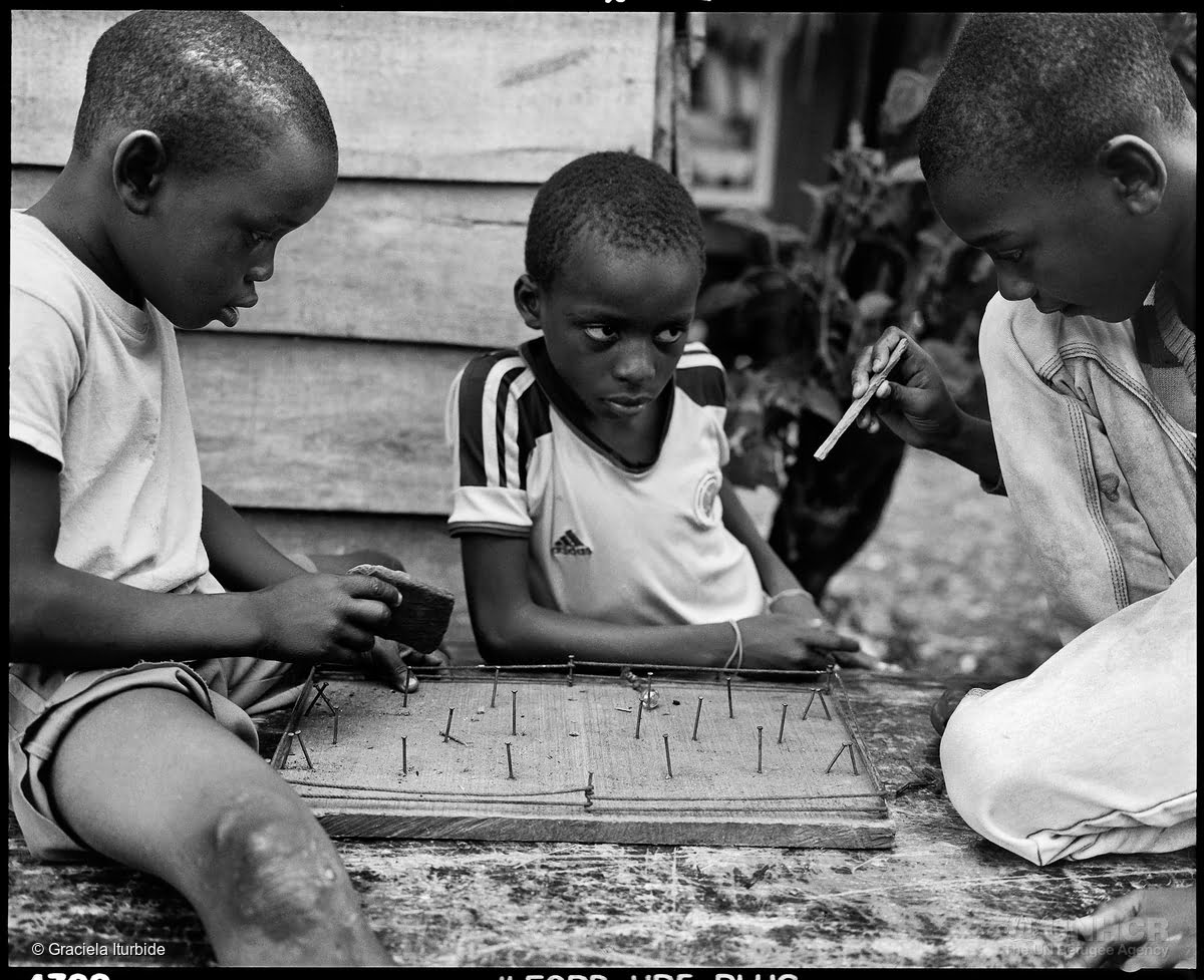 Children in Puente Nayero play an improvised game of table football. The success of the Puente Nayero Humanitarian Space has encouraged residents on the neighboring street of Punta Icaco to begin organizing to create their own humanitarian space. Graciela Iturbide