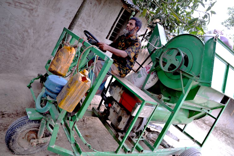 Thankfully, Muzaffar’s life took a positive change. He did not get justice in court, but a few years ago a local NGO gave him a few goats and a sheep, and Bangladesh’s largest NGO gave him a cow. Muzaffar decided to sell his animals, using the money to get a loan, buy a harvester machine, and start a small business.